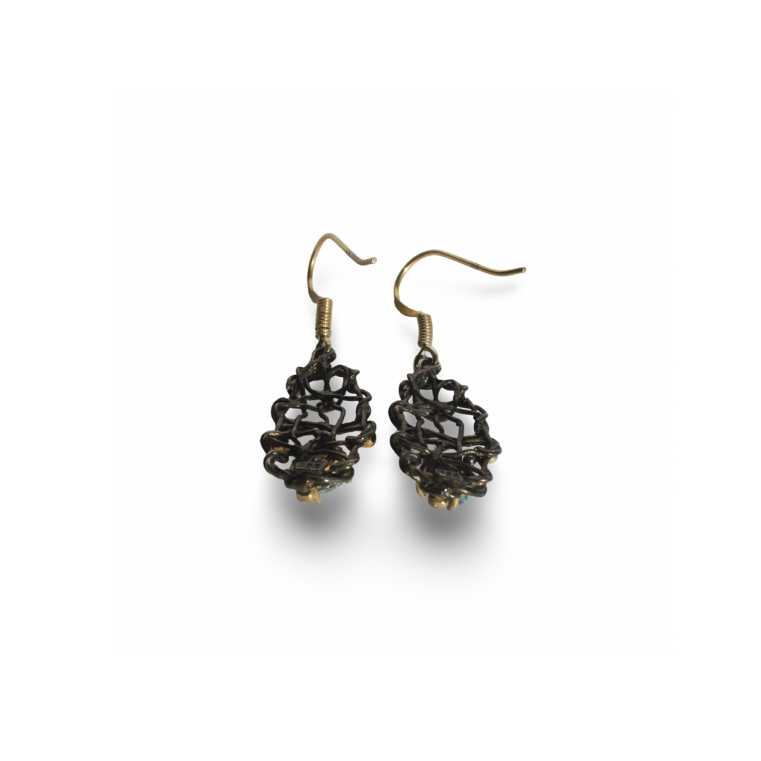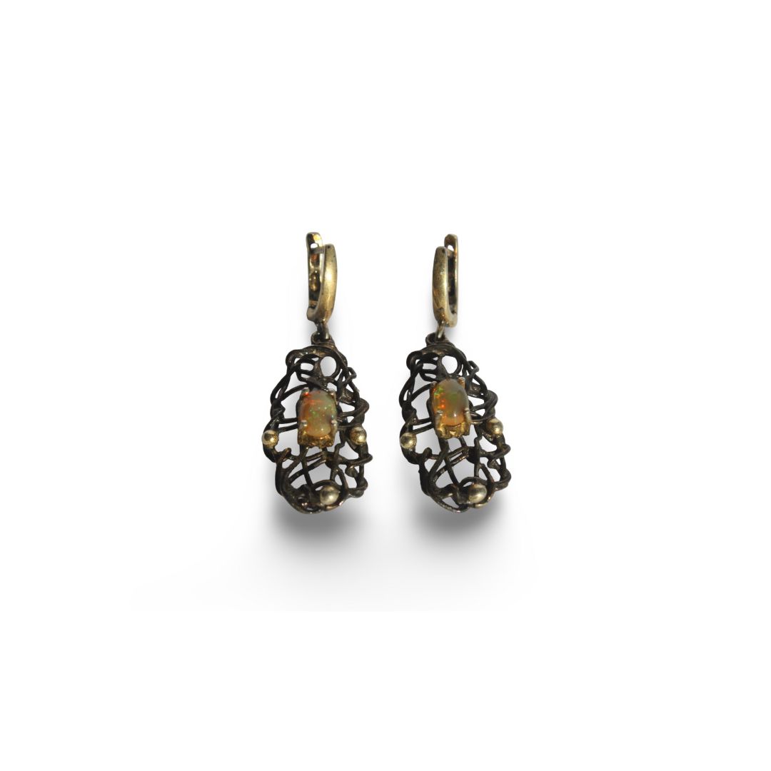Pergamon Altın Kaplama Detaylı Opal Gümüş Küpe 23x15mm