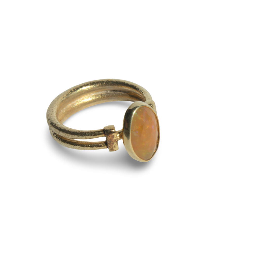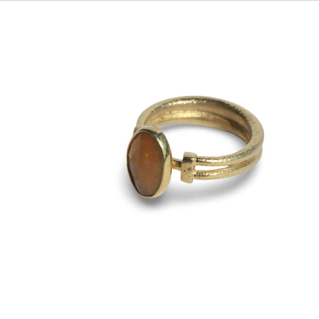 Pergamon Altın Kaplama Opal Gümüş Yüzük